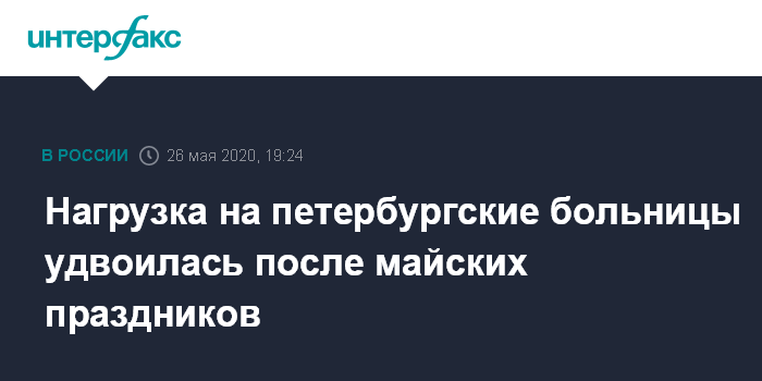 Москва. 26 мая. INTERFAX.RU - После майских праздников в больницы Петербурга стало поступать вдвое больше больных COVID-19, нагрузка на врачей колоссальна, сообщил первый заместитель председателя городского комитета по здравоохранению Андрей Сарана.