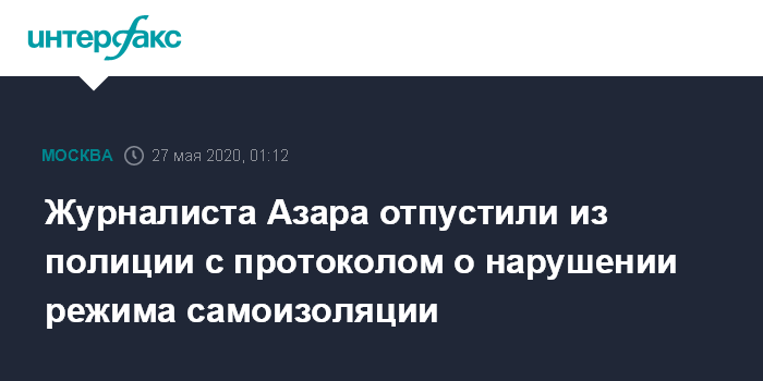 Журналиста Азара отпустили из полиции с протоколом о нарушении режима самоизоляции