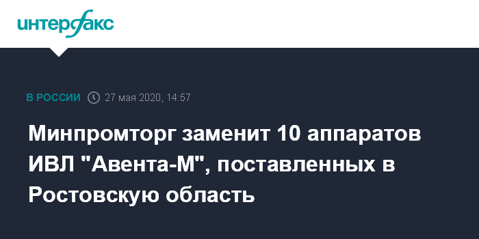 Минпромторг заменит 10 аппаратов ИВЛ "Авента-М", поставленных в Ростовскую область