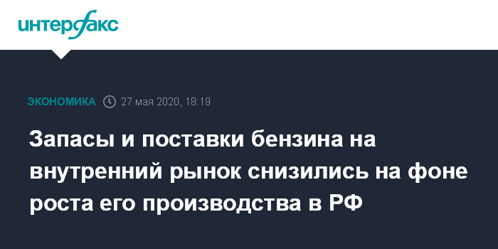 Производство бензина падало апрель и первую половину мая в связи со снижением спроса на топливо в стране из-за ограничений по коронавирусу. При этом поставки бензина на внутренний рынок начали расти в 20-х числа апреля, до этого они снижались 3 недели подряд.