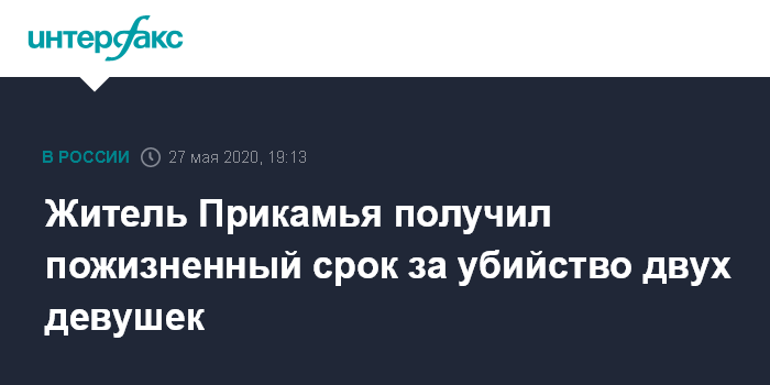 Москва. 27 мая. INTERFAX.RU - Суд в Пермском крае приговорил местного жителя к пожизненному сроку заключения за убийство двух девушек в 2018 году, сообщается на сайте регионального СУ СКР в среду.