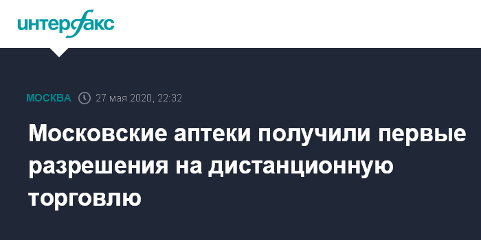 Москва. 27 мая. INTERFAX.RU - Росздравнадзор по Москве выдал столичным аптекам первые разрешения на дистанционную торговлю лекарствами.