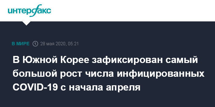 В Южной Корее зафиксирован самый большой рост числа инфицированных COVID-19 с начала апреля