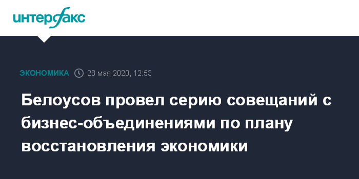 В среду, 27 мая, прошли совещания Белоусова с объединениями малого и среднего бизнеса - "Опорой России" и "Деловой Россией". На встрече с "Опорой" обсуждались несколько блоков вопросов, принципиально важных для малого бизнеса, в первую очередь - снижение издержек при открытии экономики.