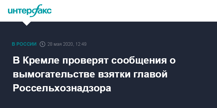 Москва. 28 мая. INTERFAX.RU - В Кремле видели сообщения о заявлении польского предпринимателя в российскую полицию о вымогательстве взятки со стороны главы Россельхознадзора Сергея Данкверта, информацию проверят, заявил пресс-секретарь президента РФ Дмитрий Песков.