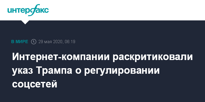 Москва. 29 мая. INTERFAX.RU - В американских компаниях Twitter, Facebook и Google считают, что указ президента США Дональда Трампа о социальных сетях угрожает свободе интернета.