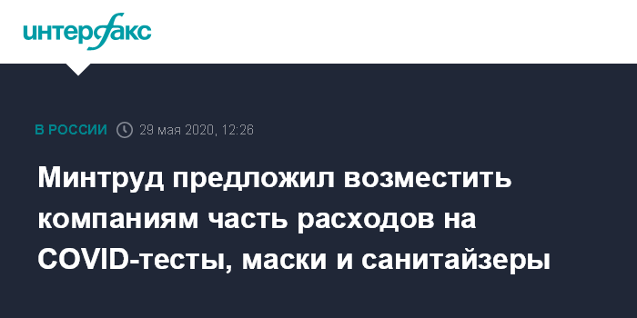 Минтруд предложил возместить компаниям часть расходов на COVID-тесты, маски и санитайзеры