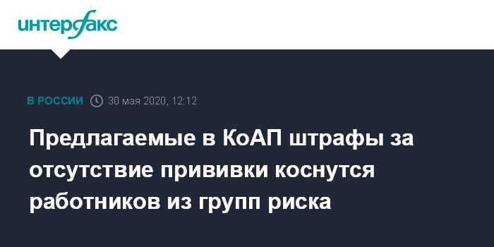 Ранее Минюст разместил на портале проектов нормативных правовых актов проект нового Кодекса об административных правонарушениях, согласно которому для граждан из группы риска предлагается установить штраф до 7 тыс. руб. за отказ от предписанных законом медосмотров и прививок.