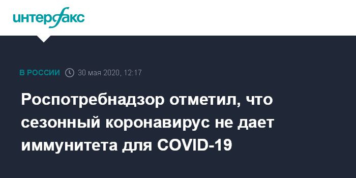 Москва. 30 мая. INTERFAX.RU - Связанные с коронавирусами сезонные заболевания не дают перекрестного иммунитета для COVID-19, заявила в субботу глава Роспотребнадзора Анна Попова.