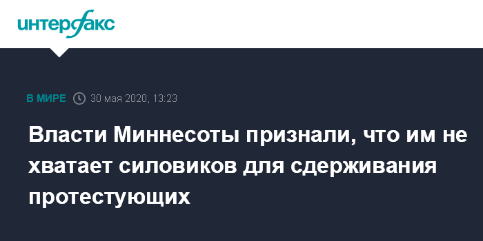 Москва. 30 мая. INTERFAX.RU - Губернатор штата Миннесота Тимоти Уолз признал, что даже с учетом привлеченных к охране порядка 500 сотрудников Национальной гвардии сил для обеспечения безопасности в Миннеаполисе недостаточно, сообщает агентство Associated press (AP).