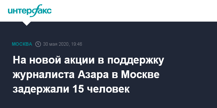 Журналист Илья Азар был задержан 26 мая у здания МВД, где он проводил одиночный пикет в поддержку "омбудсмена полиции" Владимира Воронцова. Тверской суд Москвы признал Азара виновным в повторном нарушении установленного порядка организации либо проведения пикетирования и назначил ему наказание в виде 15 суток ареста. Кроме административного протокола по статье 20.2, журналисту был выписан штраф за нарушение требований нормативных правовых актов Москвы, направленных на обеспечение режима повышенной готовности. Апелляция назначена на 1 июня.