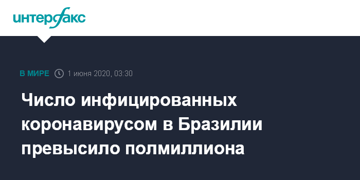 Число инфицированных коронавирусом в Бразилии превысило полмиллиона