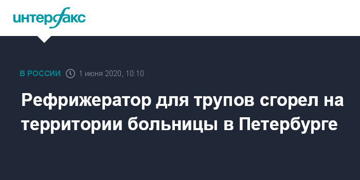 Москва. 1 июня. INTERFAX.RU - На территории петербургской городской больницы №2 сгорел рефрижератор, предназначенный для тел умерших пациентов.