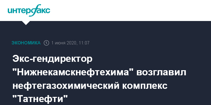 Москва. 1 июня. INTERFAX.RU - Бывший генеральный директор ПАО "Нижнекамскнефтехим" (НКНХ) Азат Бикмурзин 1 июня назначен директором нефтегазохимического комплекса ПАО "Татнефть", говорится в сообщении компании.