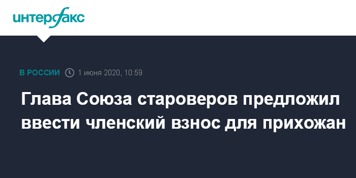 Москва. 1 июня. INTERFAX.RU - Церкви следует отойти от существующей финансовой модели и перейти к посильным членским взносам для прихожан, которые создадут необходимый запас для ее выживания в условиях пандемии, считает глава Всемирного союза староверов Леонид Севастьянов, который в прошлом работал политическим аналитиком в Мировом банке.