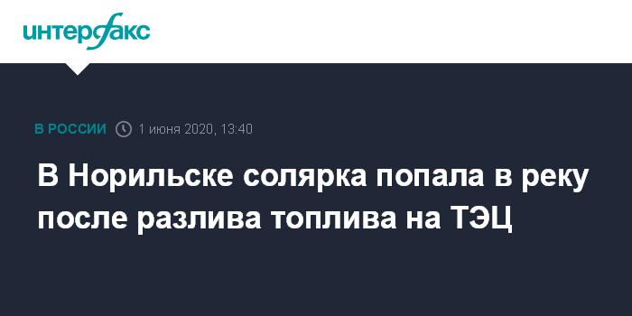 Ранее сообщалось, что 29 мая произошла разгерметизация топливного бака и возгорание нефтепродуктов на ТЭЦ-3 АО "Норильско-Таймырская энергетическая компания" (НТЭК, входит в "Норильский никель"), которая обеспечивает энергоснабжение Норильского промышленного района Норильска.