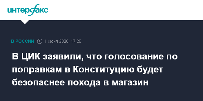 В ЦИК заявили, что голосование по поправкам в Конституцию будет безопаснее похода в магазин