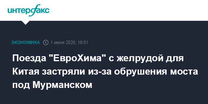 Поезда "ЕвроХима" с желрудой для Китая застряли из-за обрушения моста под Мурманском