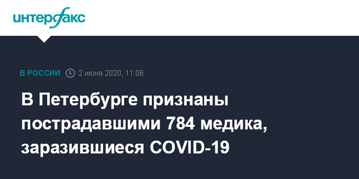 Москва. 2 июня. INTERFAX.RU - Специальные комиссии в Петербурге рассмотрели почти тысячу заявлений медицинских работников, заболевших COVID-19, сообщили "Интерфаксу" в аппарате вице-губернатора Олега Эргашева.