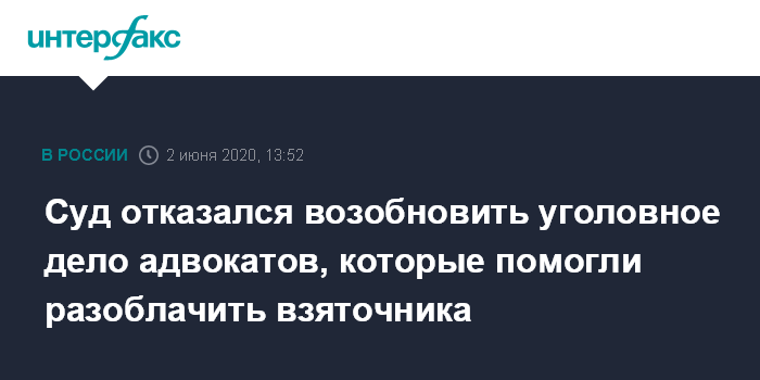 Суд отказался возобновить уголовное дело адвокатов, которые помогли разоблачить взяточника