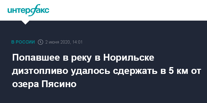 Москва. 2 июня. INTERFAX.RU - Распространение дизельного топлива, разлившегося в результате аварии на ТЭЦ в Норильске, удалось сдержать боновыми заграждениями на реке в нескольких километрах от озера Пясино. Об этом сообщает во вторник пресс-служба Всемирного фонда дикой природы в России (WWF).