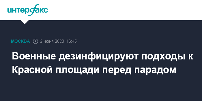 Москва. 2 июня. INTERFAX.RU - Подразделения химзащиты проведут дезинфекцию подъездных дорог и площадей в Москве перед репетициями парада Победы на Красной площади и накануне самого парада 24 июня, пообещал начальник войск радиационной, химической и биологической защиты (РХБЗ) Вооруженных сил России генерал-лейтенант Игорь Кириллов.