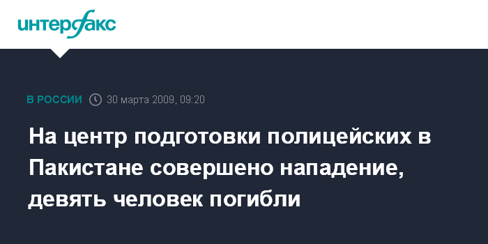 Москва. 30 марта. INTERFAX.RU - Минимум девять человек погибли и 30 получили ранения в результате нападения группы неизвестных на центр подготовки полицейских в пакистанском городе Лахоре, передают в понедельник местные СМИ.