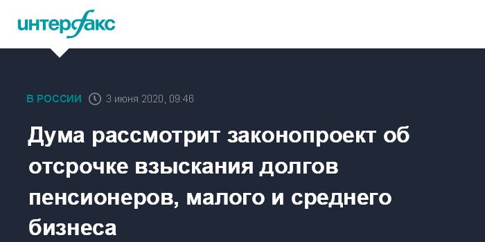 Дума рассмотрит законопроект об отсрочке взыскания долгов пенсионеров, малого и среднего бизнеса