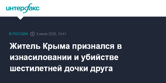 Москва. 3 июня. INTERFAX.RU - В Крыму 39-летнему ранее судимому жителю поселка Ленино предъявлено обвинение в изнасиловании и убийстве шестилетней девочки. Как сообщили в СКР, он признался и в ходе эксперимента на местности рассказал и показал, как совершил преступления.