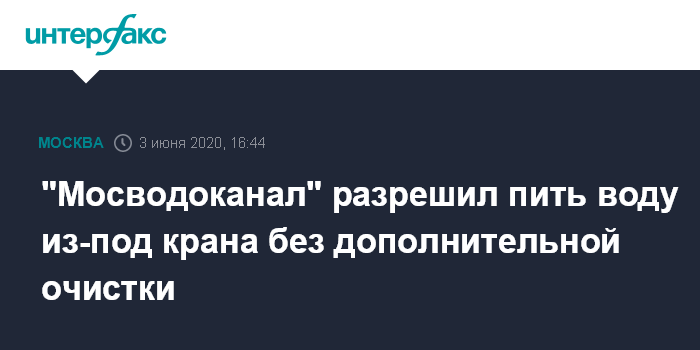 Москва. 3 июня. INTERFAX.RU - Водопроводная вода в Москве соответствует всем самым жестким нормативам, сообщили "Интерфаксу" в пресс-службе АО "Мосводоканал".
