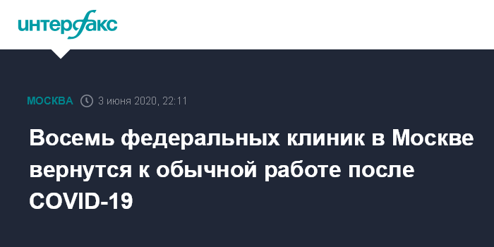 Восемь федеральных клиник в Москве вернутся к обычной работе после COVID-19
