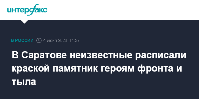 Москва. 4 июня. INTERFAX.RU - Глава Саратова Михаил Исаев потребовал от правоохранительных органов найти и наказать хулиганов, осквернивших монумент "Героям фронта и тыла" в Заводском районе города.