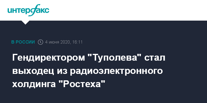 Гендиректором "Туполева" стал выходец из радиоэлектронного холдинга "Ростеха"