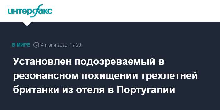 Установлен подозреваемый в резонансном похищении трехлетней британки из отеля в Португалии