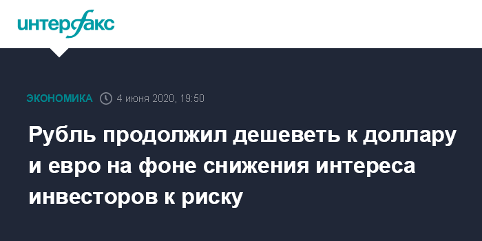 Рубль продолжил дешеветь к доллару и евро на фоне снижения интереса инвесторов к риску