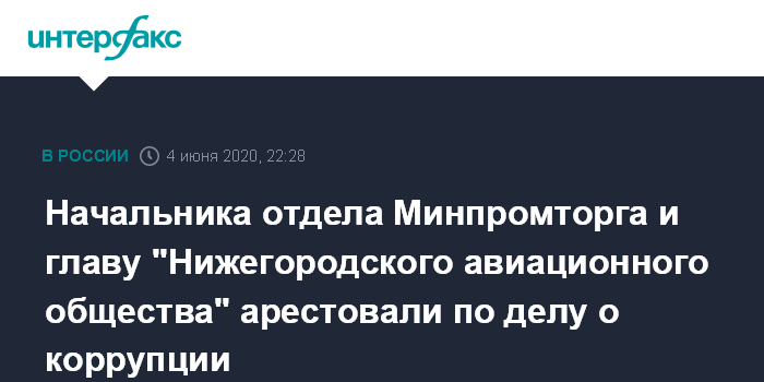 Начальника отдела Минпромторга и главу "Нижегородского авиационного общества" арестовали по делу о коррупции