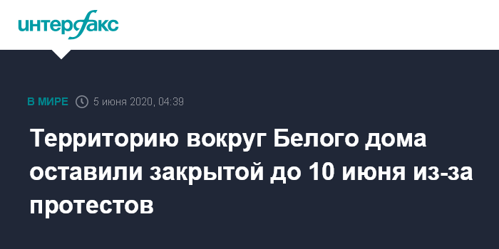 Территорию вокруг Белого дома оставили закрытой до 10 июня из-за протестов