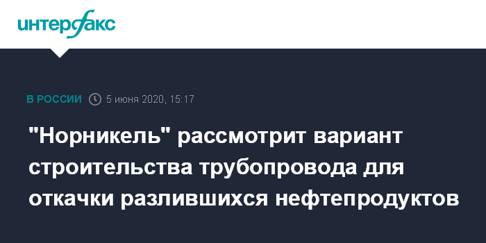 "Норникель" рассмотрит вариант строительства трубопровода для откачки разлившихся нефтепродуктов
