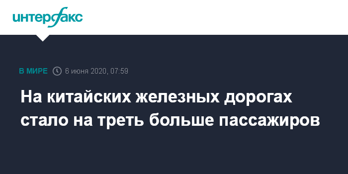 Москва. 6 июня. INTERFAX.RU - Пассажиропоток на железных дорогах КНР за май вырос по сравнению с апрелем текущего года на 37,6%, сообщают местные СМИ, ссылаясь на данные Китайской железнодорожной корпорации.