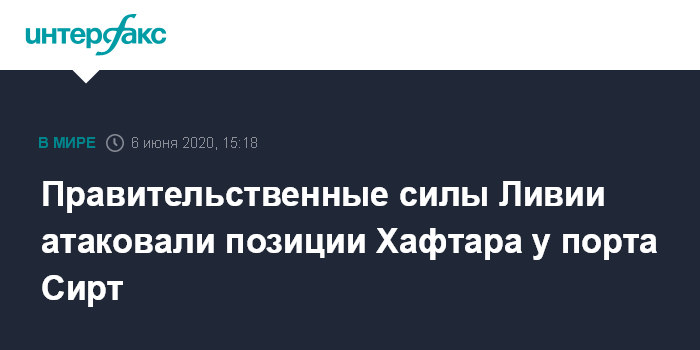 Москва. 6 июня. INTERFAX.RU - Силы признанного ООН правительства национального согласия (ПНС) Ливии наносят удары по соединениям Ливийской национальной армии (ЛНА) Халифы Хафтара у портового города Сирт, сообщает в субботу издание Al-Masdar со ссылкой на представителя ПНС.