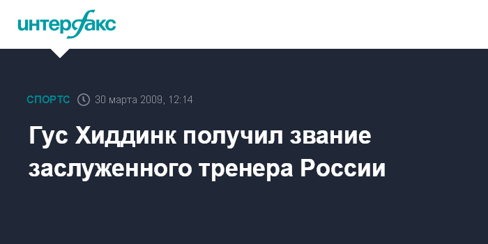 Москва. 30 марта. INTERFAX.RU – Главному тренеру сборной России по футболу Гусу Хиддинку и его помощникам Александру Бородюку и Игорю Корнееву, вручены свидетельства о присвоении им звания заслуженных тренеров России, сообщает телеканал "Спорт".