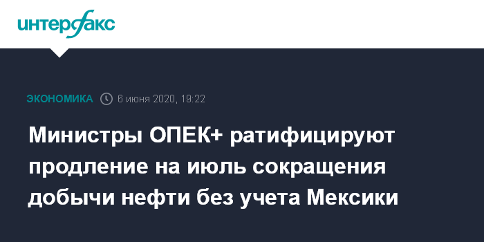 Министры ОПЕК+ ратифицируют продление на июль сокращения добычи нефти без учета Мексики