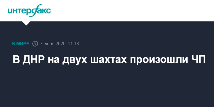 Москва. 7 июня. INTERFAX.RU - Один горняк погиб, еще один пострадал в результате чрезвычайных происшествий на шахтах самопровозглашенной Донецкой народной республики, сообщили в воскресенье в МЧС ДНР.