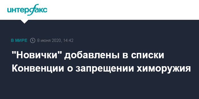 Москва. 8 июня. INTERFAX.RU - Опасные химикаты семейства "Новичок" официально включены в списки Конвенции о запрещении химического оружия (КЗХО).