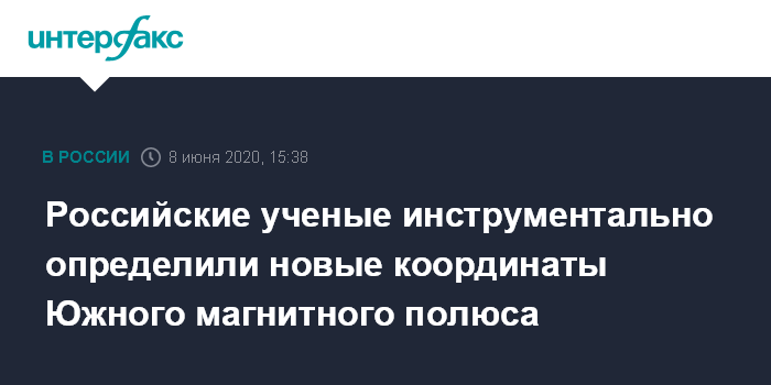 Москва. 8 июня. INTERFAX.RU - Российские ученые в рамках кругосветной экспедиции океанографического исследовательского судна (ОИС) ВМФ "Адмирал Владимирский" определили с помощью специальных инструментов новые координаты Южного магнитного полюса Земли.