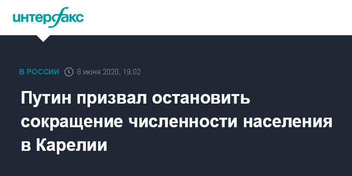Москва. 8 июня. INTERFAX.RU - Президент РФ Владимир Путин обратил внимание главы Карелии Артура Парфенчикова на проблему сокращения численности постоянного населения региона.
