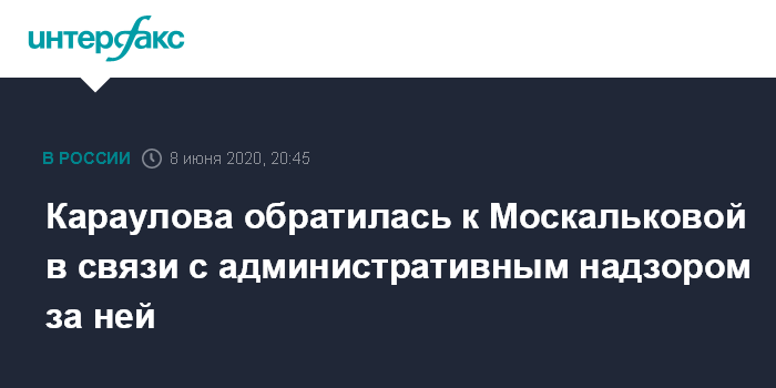 4 июня Кунцевский суд Москвы удовлетворил ходатайство отдела МВД по району Кунцево об установлении административного надзора за Карауловой. Согласно решению суда, Карауловой нельзя будет выходить из дома с 22:00 до 6:00 по московскому времени, если это не связано с работой.