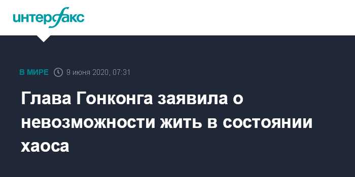 Москва. 9 июня. INTERFAX.RU - Город более не может жить в состоянии хаоса, завила глава администрации Гонконга Кэрри Лэм журналистам во вторник.