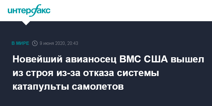 Москва. 9 июня. INTERFAX.RU - Новейший американский атомный авианосец USS Gerald R. Ford (CVN-78) вынужден был вернуться из тестового похода на свою базу в Норфолке (штат Вирджиния) в связи с отказом системы для запуска самолетов палубной авиации, сообщили Военно-морские силы США.
