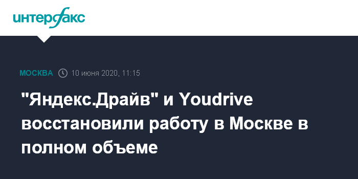 Москва. 10 июня. INTERFAX.RU - Сервисы каршеринга Youdrive и "Яндекс.Драйв" вернули возможность поминутной аренды автомобилей, следует из данных приложений сервисов. Для пользователей BelkaCar пока сохраняется только возможность арендовать машину на срок от пяти дней.